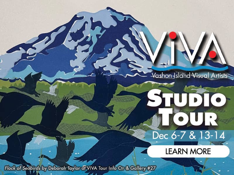 VIVA is 200 strong and growing. We welcome all Vashon visual artists and supporters! VIVA is a non-profit, volunteer organization formed to support a more than 30-year open studio tour tradition. The first two weekends in May and again in December VIVA presents the all-Island art studio tour when artists of almost every medium throw open their studio doors.