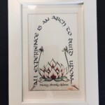 In my experience, calligraphy has many other dimensions. First of all, it is a concentrated meditation. If you get distracted, you spell a word wrong or leave it out altogether. To calligraph, one must coordinate the golden triangle of Heart, (emotion, passion, spirit), Head (meaning, understanding and memory) and Hand (the rhythms and form of the tactile writing). All of which imprints a person as they calligraph. After all these years of writing golden words, sayings, and poems, I have a brain emblazoned with quotes and poetry. When I am at “sixes and sevens”, or worried by the world’s disharmony, I go to my studio,